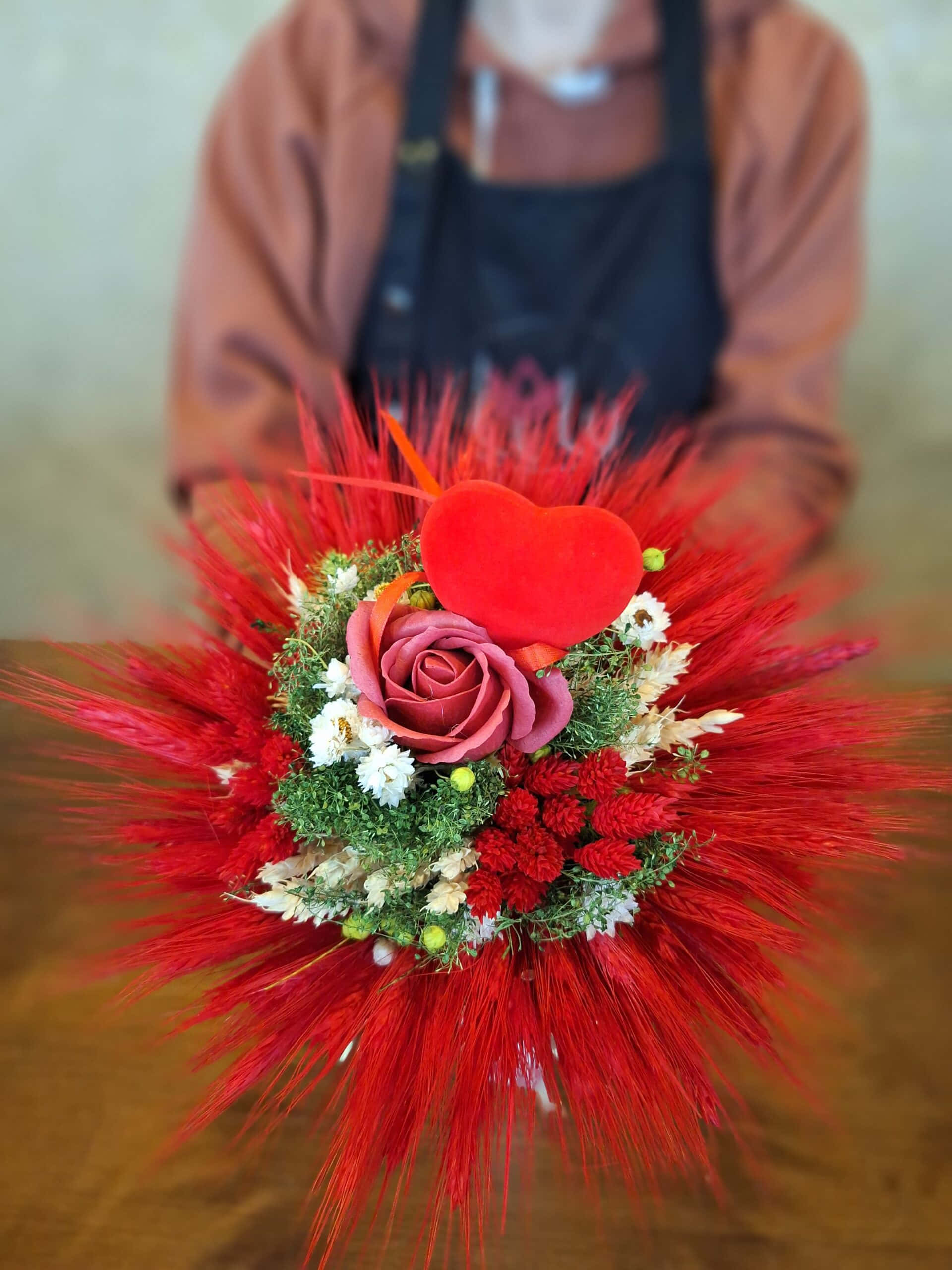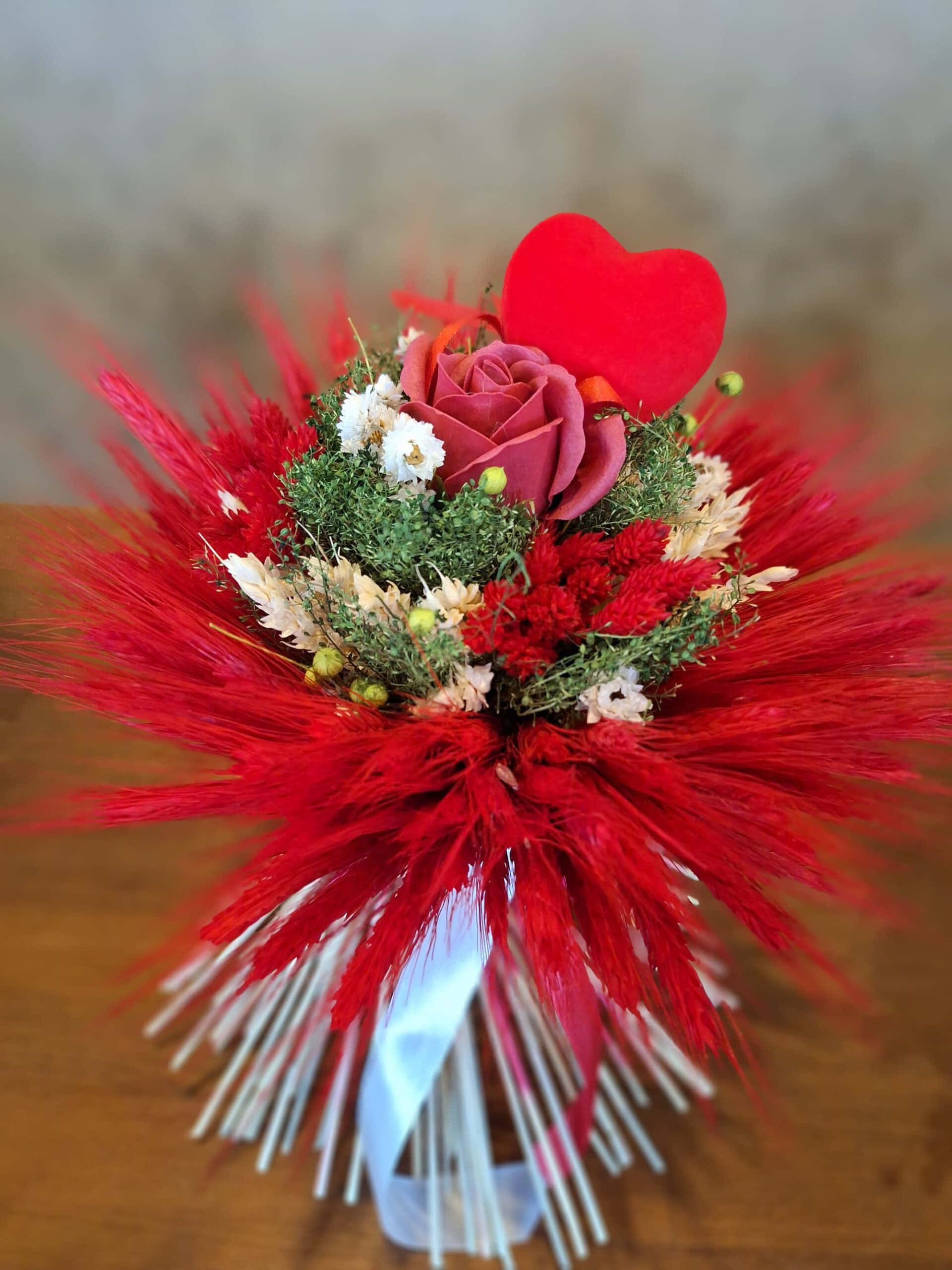Kytica je doplnená o umelú ružu a tiež o srdiečko.