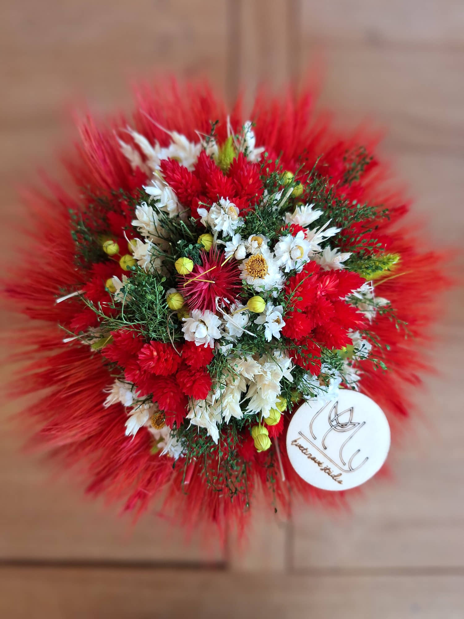 Kytica je ručne viazaná z obilných klasov. Vnútro tvorí mix sušených drobných kvetov.