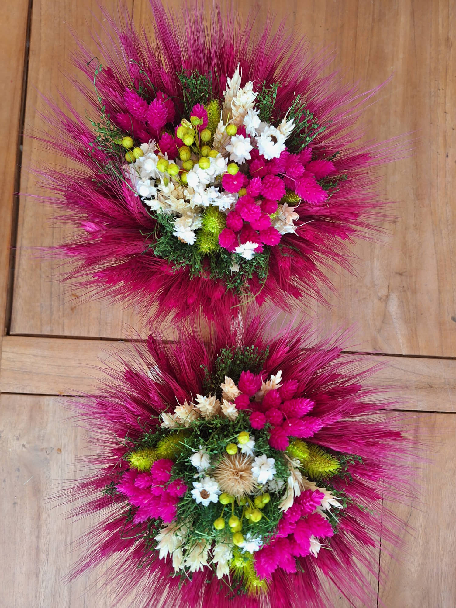 Stredná kytica je viazaná z obilných klasov. Vnútro tvorí mix sušených kvetov .