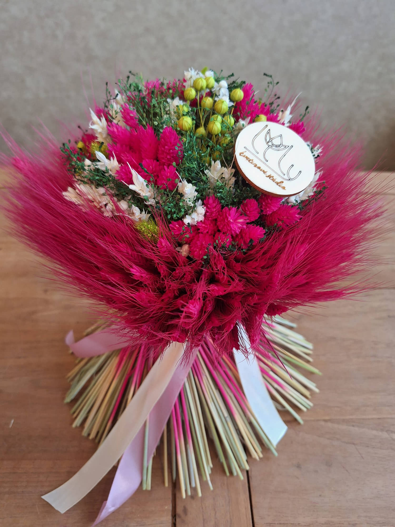 Kytica je ručne viazaná z obilných klasov. Vnútro tvorí mix sušených drobných kvetov.