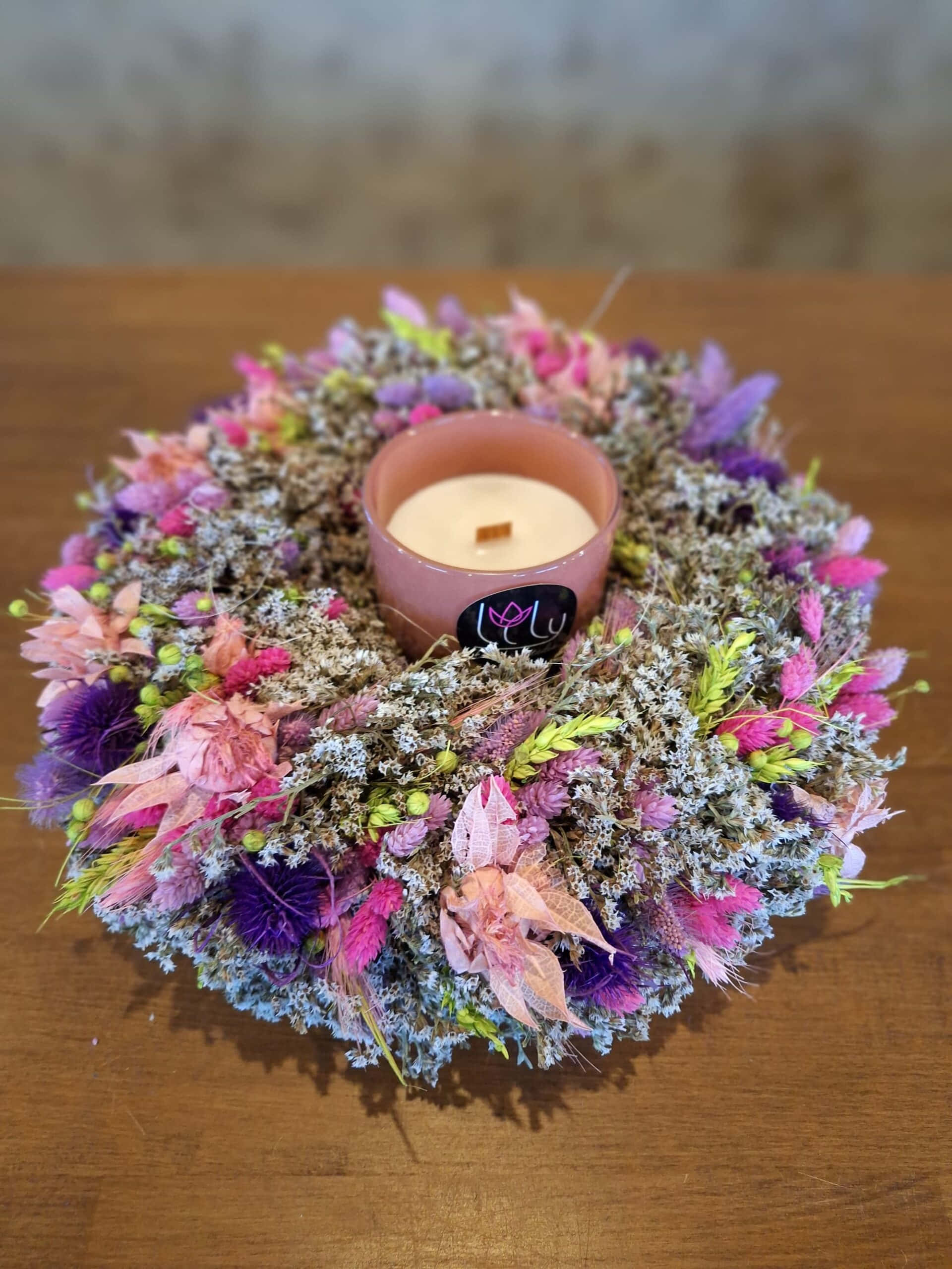 Tento set obsahuje sušený venček na podnose,doplnený o sviečku s jemnou vôňou.