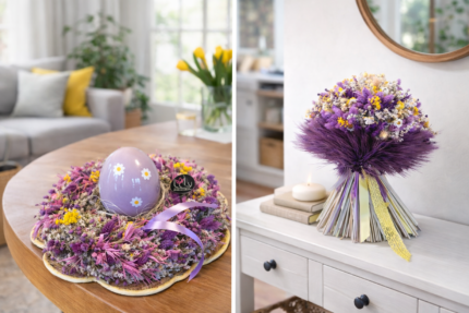 Jarný sušený venček na stôl – prírodná dekorácia