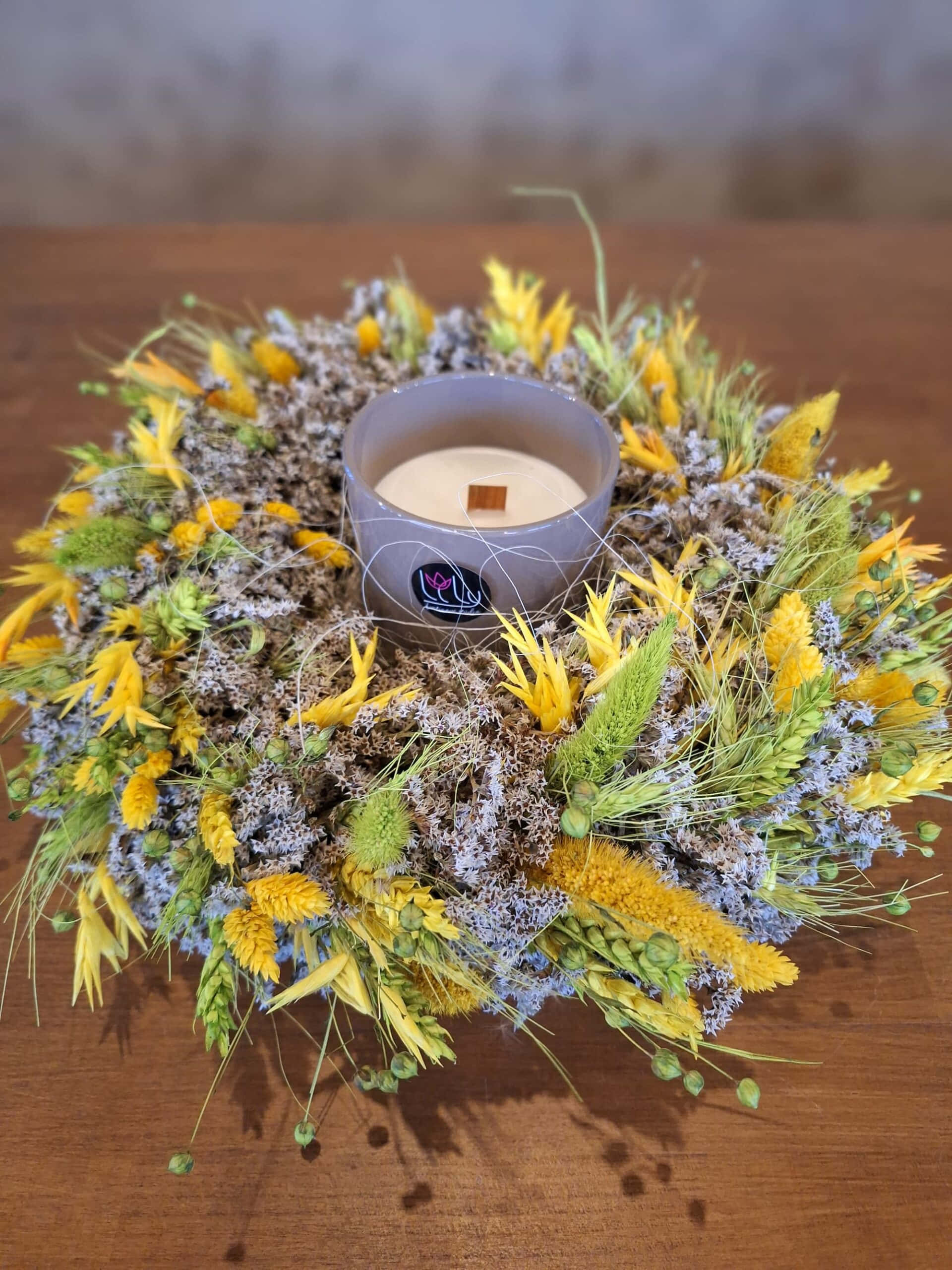 Tento set obsahuje sušený venček na podnose,doplnený o sviečku s jemnou vôňou.