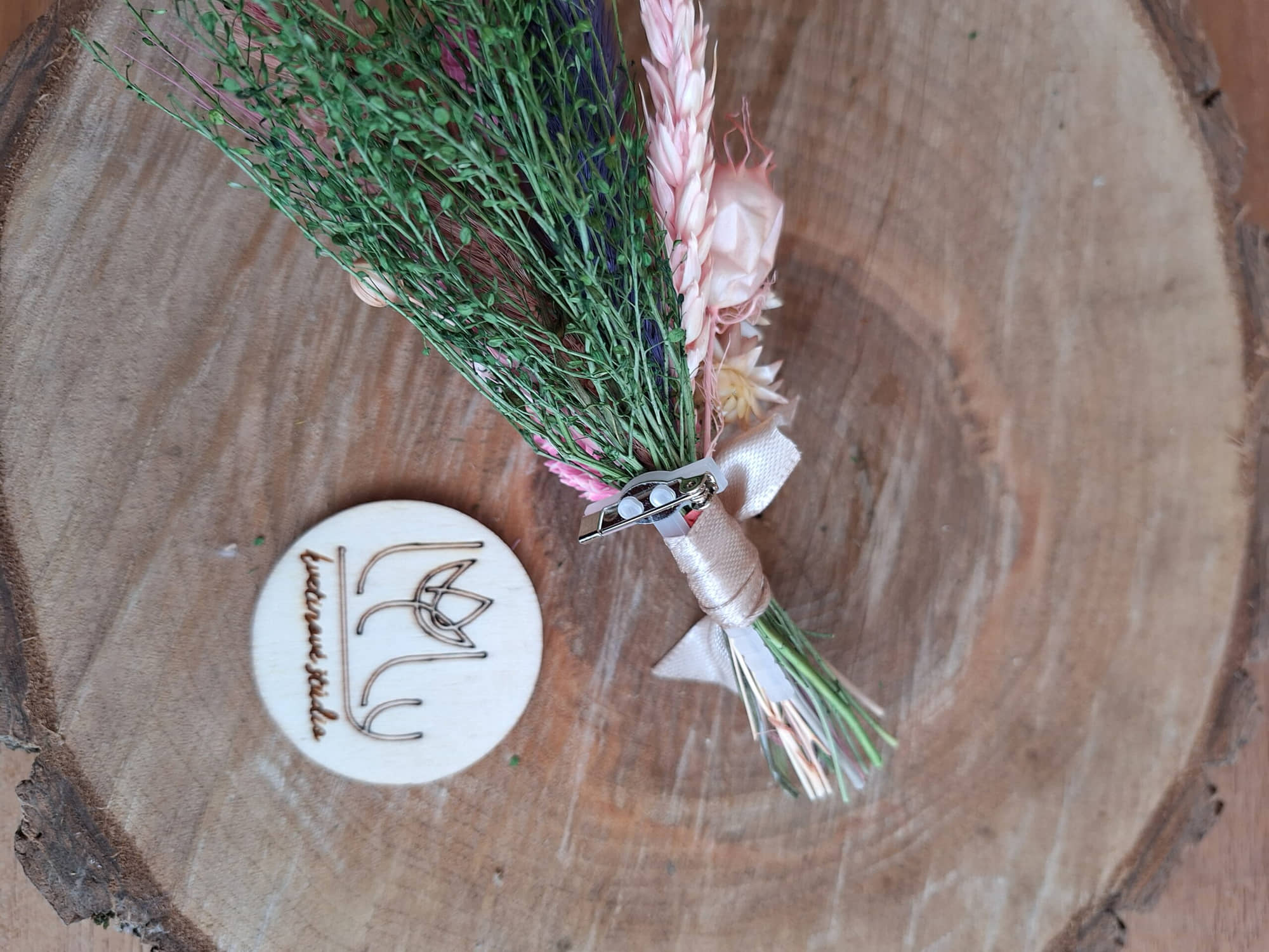 Krásny handmade svadobný set .Set obsahuje sušenú kyticu pre nevestu a k tomu pierko pre ženícha s jednoduchým zapínaním. Ideálne pre romantickú dušu.