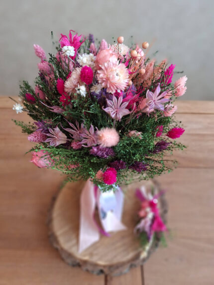 Venček zo sušených kvetov: Bohato zdobený venček zo starostlivo vyberaných sušených rastlín a tráv v jemných prírodných tónoch. Sušený materiál zaručuje dlhú životnosť bez potreby údržby.